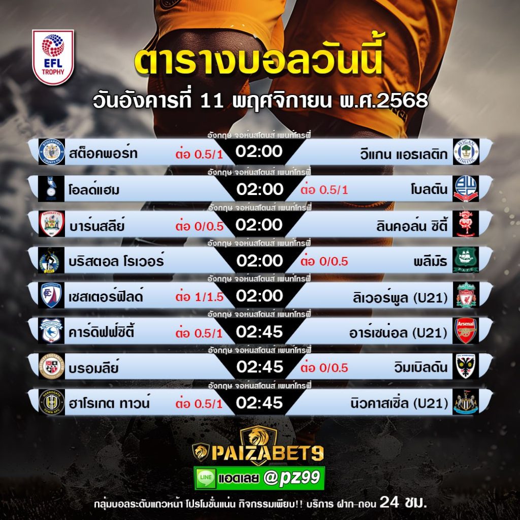 Barnsley FC vs Lincoln City FC ในศึก EFL Trophy 2025‑26 วันที่ 11 พ.ย. 2568 เวลา 02:00 น.