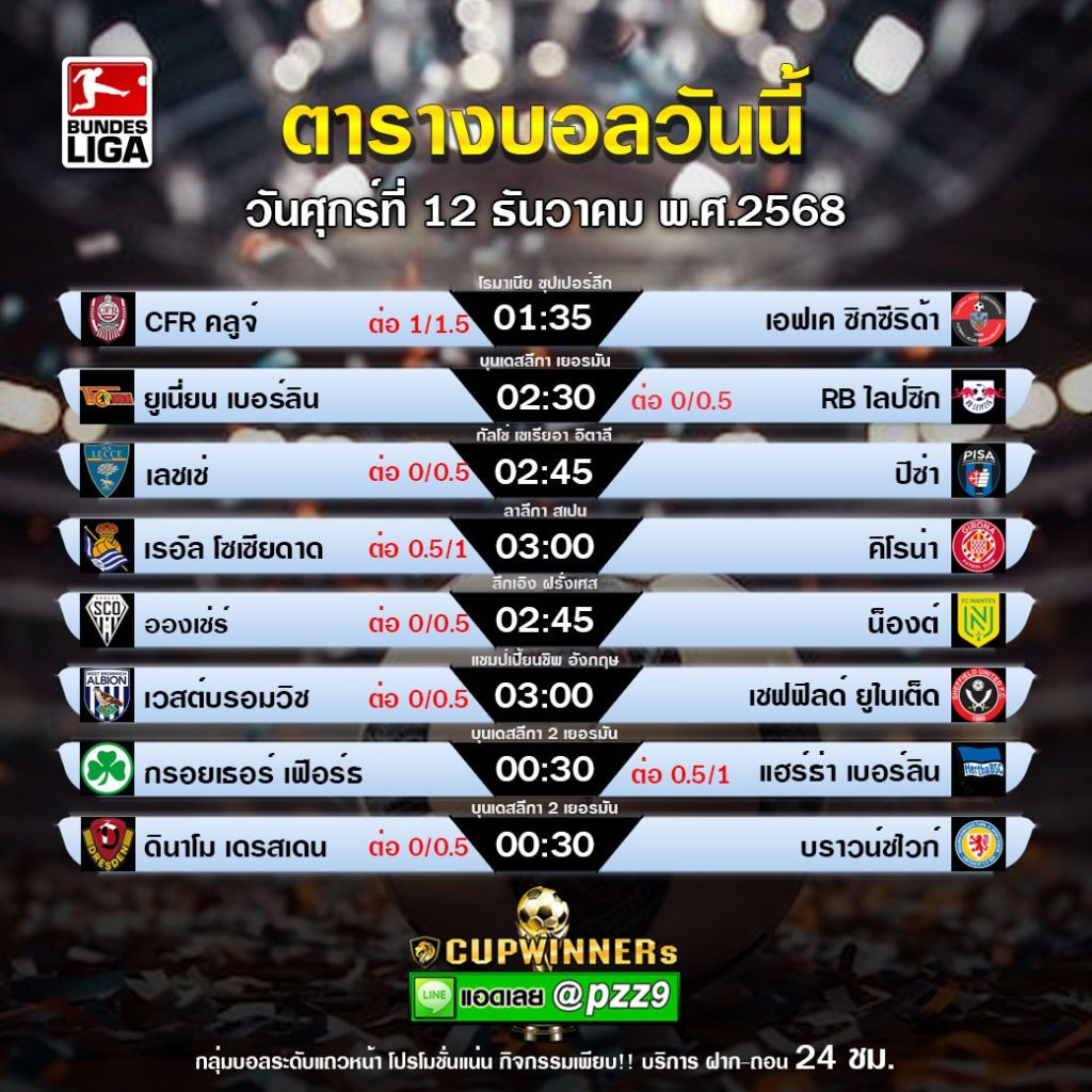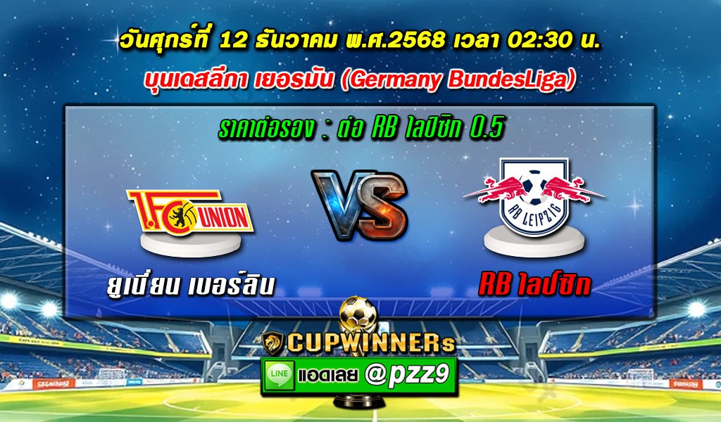 บุนเดสลีกา เยอรมัน เดินทางมาถึงนัดรองสุดท้ายก่อนพักหนีหนาว โดยคู่เปิดหัววันศุกร์นี้ ยูเนียน เบอร์ลิน เตรียมเปิดบ้าน สตาดิโอน อัน แดร์ อัลเทน ฟอร์สเทไร รับการมาเยือนของ แอร์เบ ไลป์ซิก เจ้าถิ่นหวังยุติสถิติแพ้ 3 นัดรวด ขณะที่ “กระทิงแดง” ต้องการชัยชนะเพื่อไล่กดดันจ่าฝูง บาเยิร์น มิวนิค ไม่ให้หนีห่างออกไปมากกว่านี้